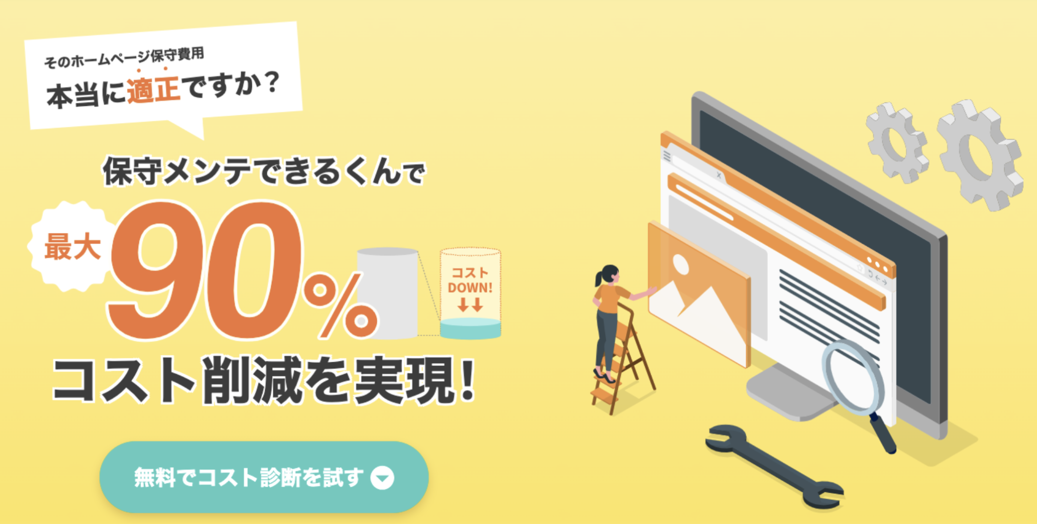 「保守メンテできるくん」は業界最安水準の料金体系で、ホームページ活用に必要な保守メンテナンス業務をサポートする中小企業向けAI BPOサービスです。