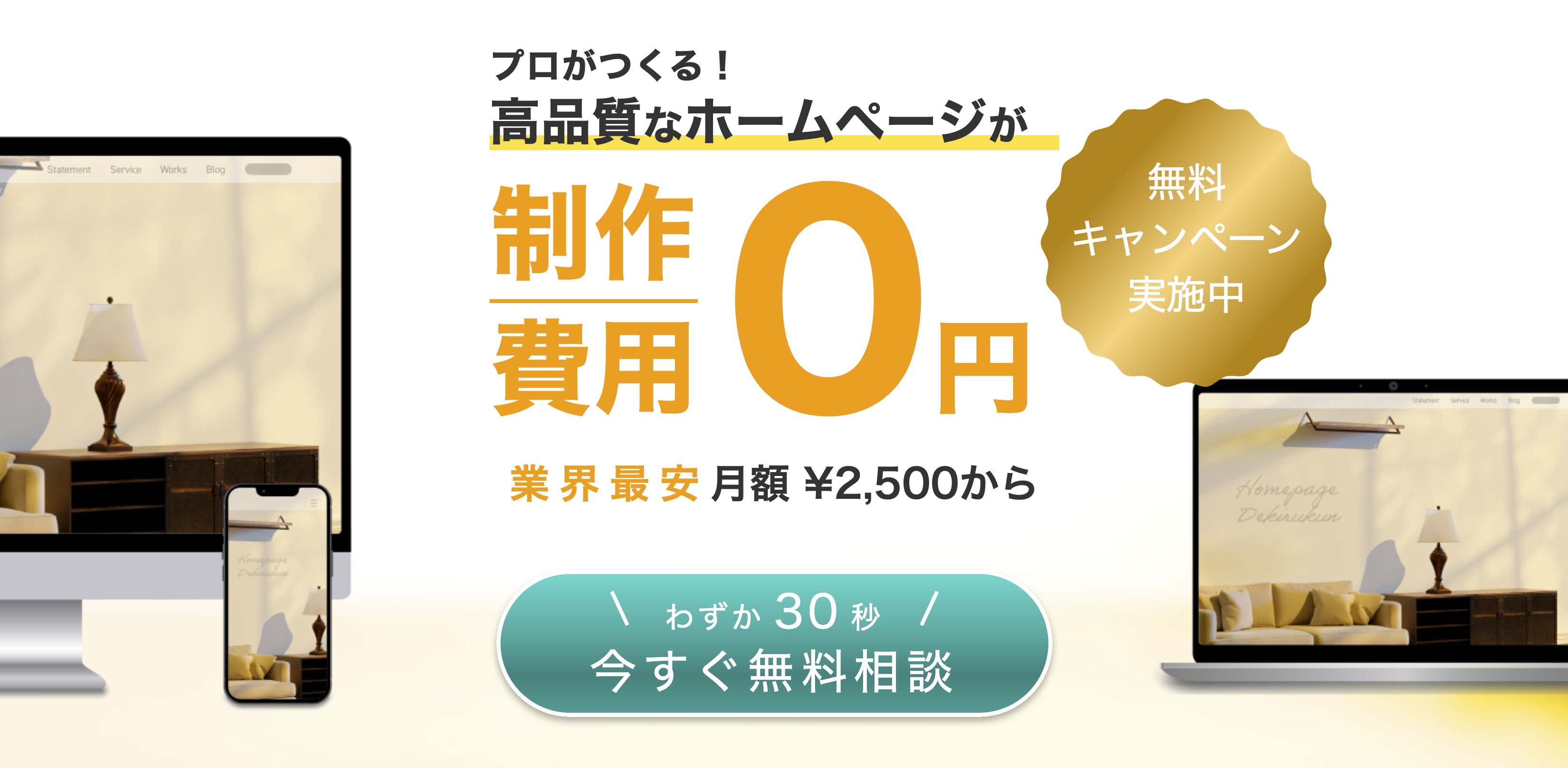 ホームページできるくんは月額数千円という低価格で、高品質なホームページ制作が依頼できるサービス。手軽な価格設定で工務店や飲食店・サロンなどの開業から、企業のホームページまで幅広く対応可能です。また完成後の修正も無料で対応。ホームページの運用もお任せできます。
